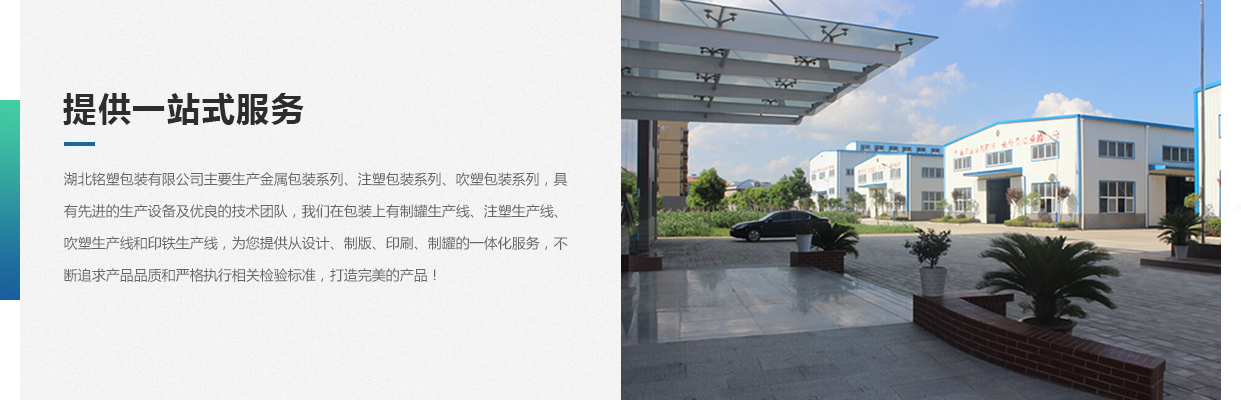 湖北銘塑包裝有限公司一家集研發(fā)、生產(chǎn)、銷售于一體的較優(yōu)秀民營企業(yè),技術(shù)力量雄厚,產(chǎn)品質(zhì)量可靠。位于交通暢順,百業(yè)興旺、經(jīng)濟富裕、政策開放的孝感開發(fā)區(qū)域。我們企業(yè)的營銷戰(zhàn)略是以建筑為土壤,以產(chǎn)品為種子,以質(zhì)量為肥料,讓綠色鋪滿全球。憑借多年來的行業(yè)經(jīng)驗,公司不斷進行創(chuàng)新和研發(fā),為市場提供更廣泛的產(chǎn)品應(yīng)用領(lǐng)域和更好環(huán)保節(jié)能產(chǎn)品,為國家能源環(huán)保戰(zhàn)略和可持續(xù)發(fā)展戰(zhàn)略作出應(yīng)有的貢獻。     湖北銘塑包裝有限公司主要生產(chǎn)金屬包裝系列、注塑包裝系列、吹塑包裝系列,具有先進的生產(chǎn)設(shè)備及優(yōu)良的技術(shù)團隊,我們在包裝上有制罐生產(chǎn)線、注塑生產(chǎn)線、吹塑生產(chǎn)線和印鐵生產(chǎn)線,為您提供從設(shè)計、制版、印刷、制罐的一體化服務(wù),不斷追求產(chǎn)品品質(zhì)和嚴格執(zhí)行相關(guān)檢驗標準,打造更好的產(chǎn)品!